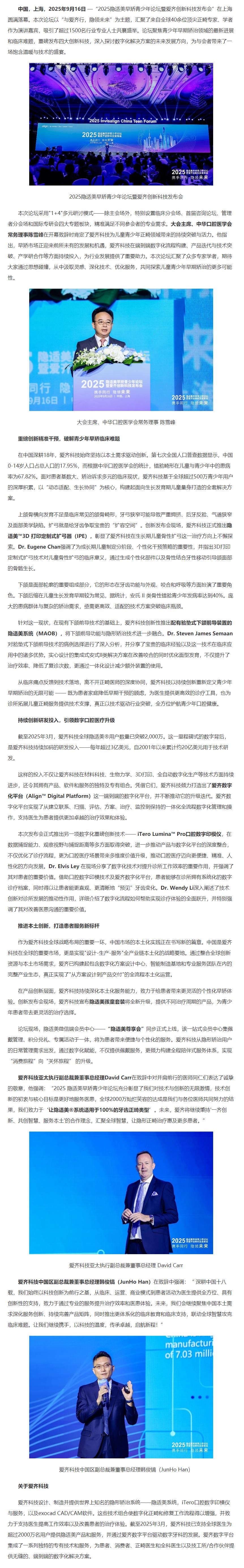 中国,四川,2024年12月17日 近日,全球数字化隐形矫治的引领者爱齐科技(Align Technology),荣登四川省市场监督管理局发布的全省质量强省建设领军企业培育名单。...