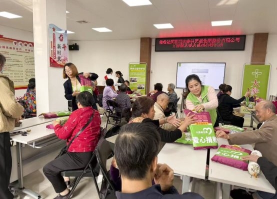 活动尾声,大参林为长者们送上爱心物资大米,将关怀落到衣食住行的实处