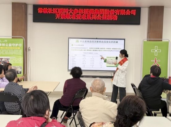 大参林药师作为专才志愿者,依托专业医药知识,为社区长者们带来干货满满的慢病健康讲座,讲师用通俗易懂的语言,细致讲解慢病的潜在危害、日常预防要点及常见用药误区,摒弃晦涩术语,贴合长者认知习惯,引导大家建立科学的慢病管理意识。